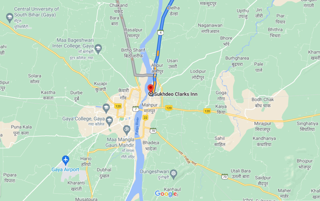 | Gaya Airport | 14 kms | 30 minutes | Car |